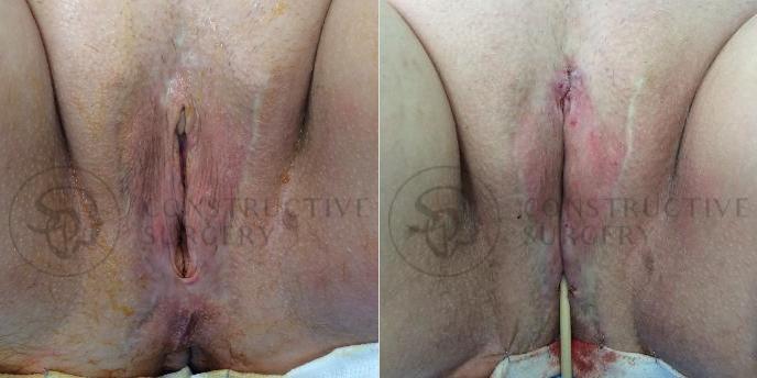 A vaginoplasty or lateral colporrhaphy will bring the separated muscles and mucosa closer together, leading to a more constricted vagina which will commonly enhance the sensation during penetrative vaginal intercourse. The external skin at the 6 o’clock position may be removed so that this skin redundancy does not also cause pain on intercourse.